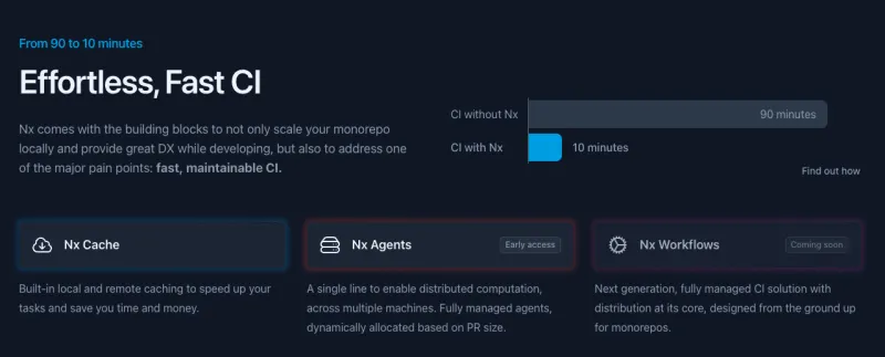 The latter is a common headache and we’ve seen companies struggle. With Nx we’re moving into the direction of becoming your e2e solution for monorepos, where we don’t just cover your local dev experience, but also provide robust and scalable solutions on CI.